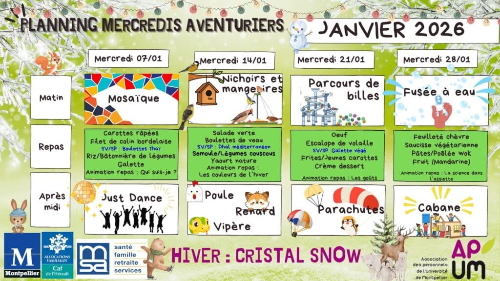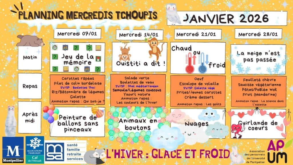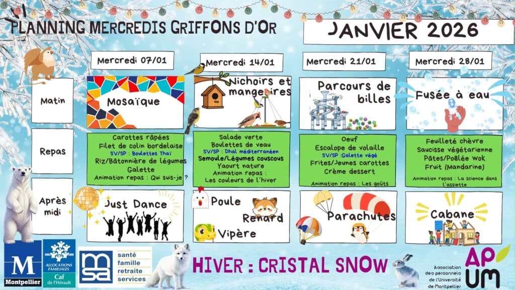 L’année 2026 commence sous le signe de la fraîcheur et de la créativité à l’APUM ! Pour ce mois de janvier, nos animateurs ont concocté des programmes sur mesure pour explorer l’hiver sous toutes ses coutures.